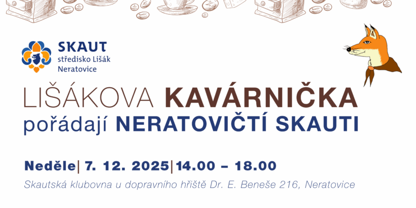 Zase po roce pořádáme 7. 12. od 14:00 Lišákovu dobročinnou kavárničku. Přijďte přispět neziskovým organizacím a vychutnat vánoční atmosféru u čaje, kávy a drobného občerstvení.